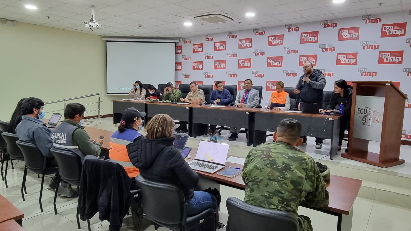 El COE de Carchi está integrado por las máximas autoridades de la provincia y/o sus delegados y operan con dos mecanismos permanentes: el plenario, donde se toman decisiones; y, las Mesas Técnicas de Trabajo (MTT) que se encargan de garantizar a la población medidas básicas de supervivencia como el acceso y distribución de agua, salud, seguridad, entre otros.